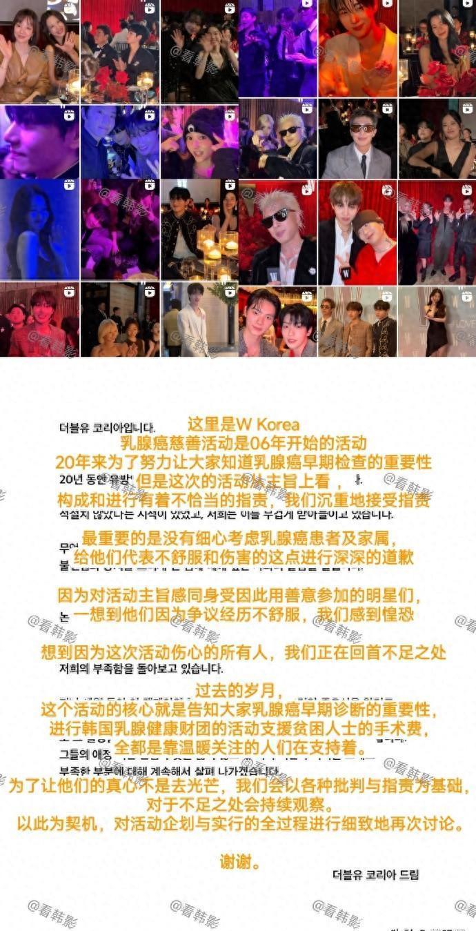 本来是乳腺癌相关的活动,结果没人戴粉色丝带,好些顶流明星压根不知道这是慈善活动。这活动办了 20 年,才募捐到 500 万,离谱到不行 —— 还不如慈善芭莎里一个艺人捐的多,搞不好办活动花的钱都比捐的多,完全搞反了! 现在韩国网友都喊着让 WKorea 停刊、接受查账,这可是他们最不想面对的,才赶紧道歉,可惜早晚了,这活动估计是最后一届了。毕竟现在韩国网友气坏了,就算是 BTS 这种超级顶流,该骂照样骂,你就知道这事影响多坏。